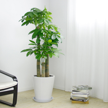 發(fā)財(cái)樹(shù),又名馬拉巴栗,屬木棉科,常綠喬木,樹(shù)高8-15m,掌狀復(fù)葉,小葉5-7枚,枝條多輪生?;ù螅L(zhǎng)達(dá)22.5cm,花瓣條裂,花色有紅、白或淡黃色,色澤艷麗。4-5月開(kāi)花,9-10月果熟,內(nèi)有10-20粒種子,大粒,形狀不規(guī)則,淺褐色。原產(chǎn)拉丁美洲的哥斯達(dá)黎加、澳洲及太平洋中的一些小島嶼,我國(guó)南部熱帶地區(qū)亦有分布。發(fā)財(cái)樹(shù)為多年生常綠灌木,喜高溫高濕氣候,耐寒力差,幼苗忌霜凍,成年樹(shù)可耐輕霜及長(zhǎng)期5-6℃低溫,中國(guó)華南地區(qū)可露地越冬,以北地區(qū)冬季須移入溫室內(nèi)防寒,喜肥沃疏松、透氣保水的沙壤土,喜酸性土,忌堿性土或粘重土壤,較耐水濕,也稍耐旱。發(fā)財(cái)樹(shù)在廣東地區(qū)通常被視為發(fā)財(cái)?shù)南笳?,多用于辦公室或家庭的裝飾物品